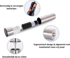 101Products Peper- & Zoutmolen Elektrisch – USB Oplaadbaar – Pepermolen – Zoutmolen – RVS