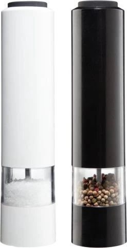 IGOODS Keramiek Elektrische Pepermolen En Zoutmolen – Pepermolen – Zoutmolen – 2 Stuks- Zwart En Wit