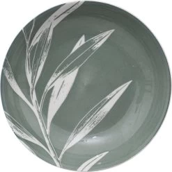 6 persoons porseleinen servies met plant dessin. Door het moderne design is het servies tijdloos maar wel wat anders dan een standaard wit servies. De set bestaat uit 6 diepe borden, 6 grote borden en 6 ontbijtbordjes. Het servies is vaatwasser en magnetron geschikt.