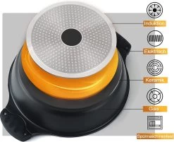 Een grote Aluminium tajine met een diameter van 32 cm en 32 cm hoogte van van uitstekende kwaliteit is voorzien van een anti-aanbaklaag waardoor het eten niet blijft plakken. Ideaal voor de bereiding van vis, vlees en groenten op Marokkaanse wijze. De speciale kegelvorm van het deksel maakt een gelijkmatige condensatie mogelijk zodat gerechten extra mals worden.