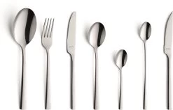 Het Manille bestek heeft door de hoogglans afwerking een stijlvolle uitstraling en is daardoor goed te combineren met veel verschillende stijlen. Ga voor een extra luxe stijl door het te combineren met marmeren accessoires, of met hout voor meer warmte.