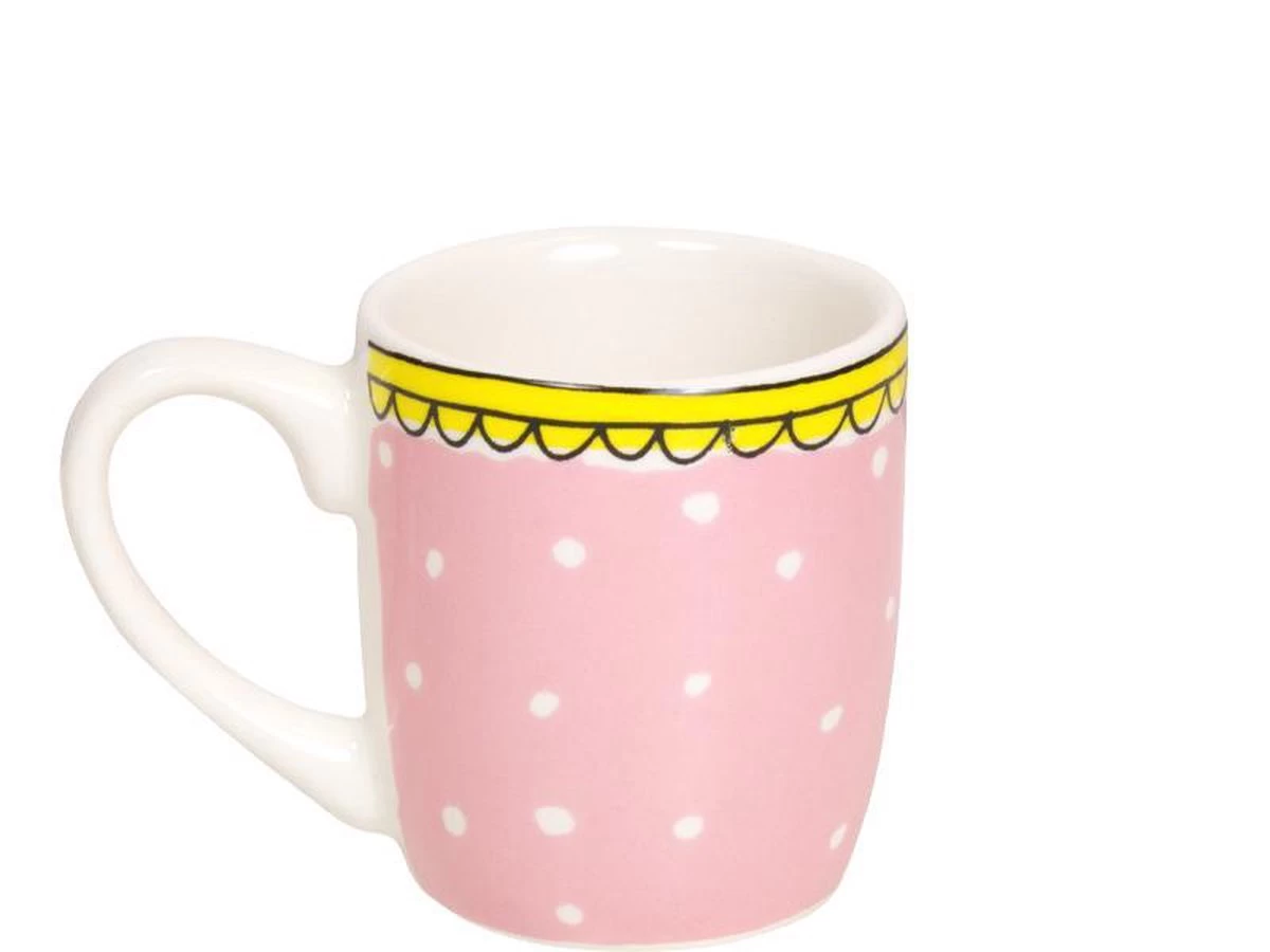 Blond Amsterdam 18 jaar! Tijd voor een feestje. De collectie Even Bijkletsen is uitgebreid met een geheel nieuw item: het espressokopje! Geniet nu ook van een heerlijke espresso geheel in Blond stijl. Het kopje is verkrijgbaar is vier verschillende prints, waaronder roze met witte stippen.