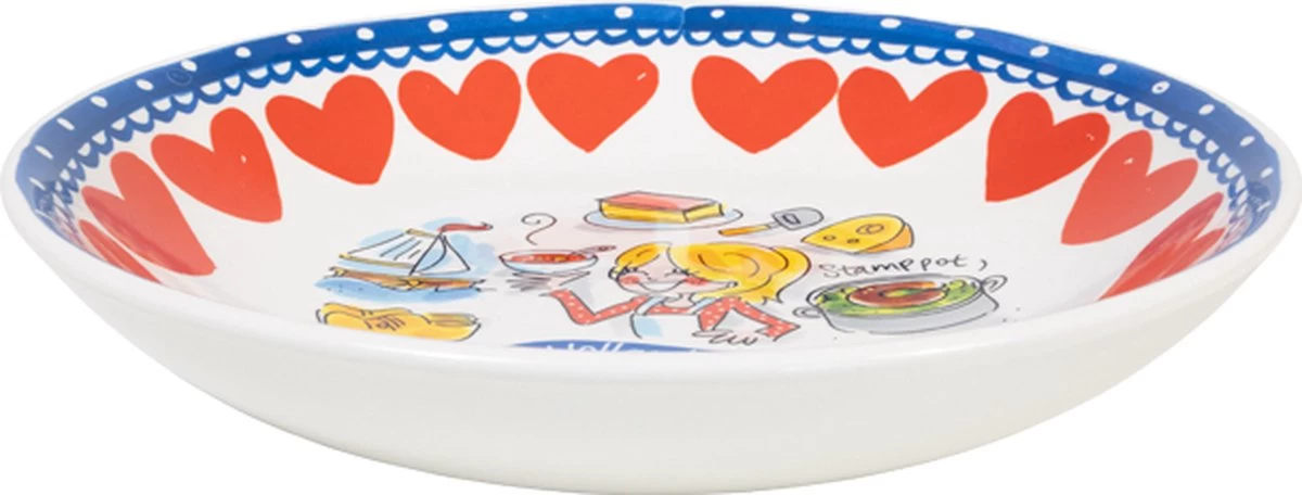 We love Holland! De nieuwe Hollands Glorie lijn van Blond Amsterdam is vormgegeven in frisse rood/wit/blauwe tinten en voorzien van typisch Hollandse illustraties. Op dit diepe bord staan o.a. illustraties van tulpen, klompen en stamppot.