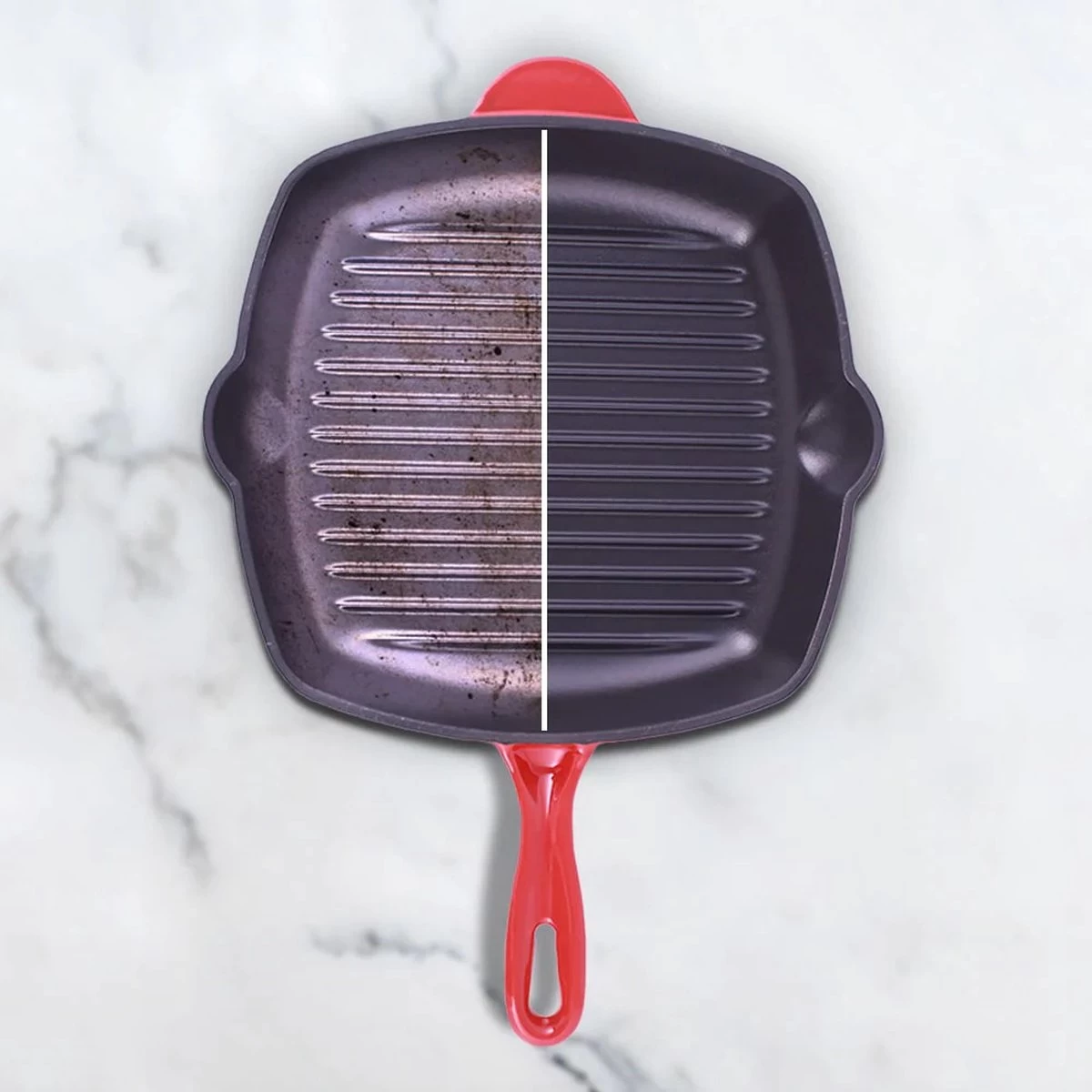 De geรซmailleerde gietijzeren grillpan van Cdealsz is van uitzonderlijke kwaliteit. De pan is volledig van gietijzer met een emaille laag.
