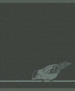 Het huismusje van DDDDD staat nieuwsgierig te kijken op de border van de thee-en keukendoek Birdy. Het dessin heeft een all-over print van bladeren waarmee je een fijne, botanische stijl creëert in de keuken.