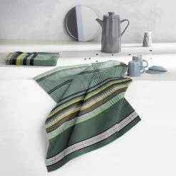 met de DDDDD thee-en keukendoek Helsinki voeg je karakter toe aan de keuken; een kleurrijk ontwerp uitgevoerd in een grafisch lijnenspel. De kleuren variëren van okergeel tot mintgroen waarbij de kleur zwart voor een mooi contrast zorgt.