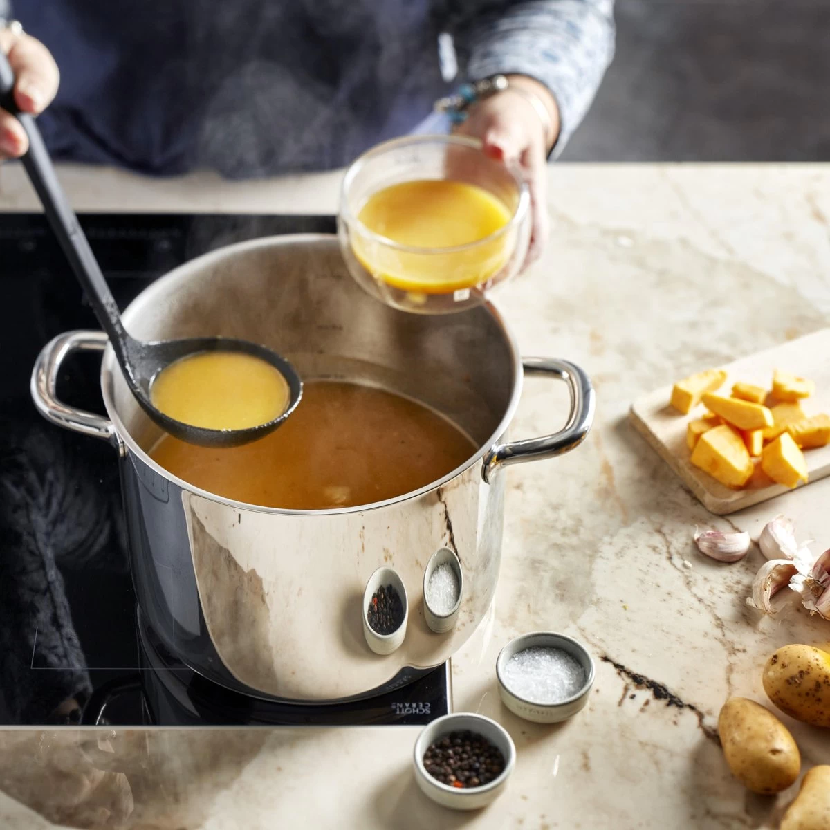 Pompoensoep, kervelcrรจme, verse kippenbouillon โฆ Deze roestvrijstalen Classico 3 soeppot van 24 cm staat je trouw bij tijdens de bereiding. De bodem verdeelt de warmte vlot en houdt ze goed vast. Op elk fornuis, ook inductie, en zelfs in de oven. Dankzij de maataanduiding binnenin is het extra handig werken met deze pot.