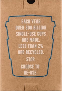 Deze iconische beker is gemaakt van natuurlijk hardgevormd polymelkzuur, een biopolymeer gemaakt van 100% hernieuwbare, plantaardige materialen zoals suikerbieten, maïs en aardappelzetmeel. Verder is de Ecoffee Cup melaminevrij en vrij van BPA, BPS en ftalaten.