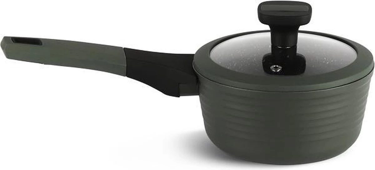 - Steelpan met glazen deksel: inhoud 1,3 liter, diameter 16 cm