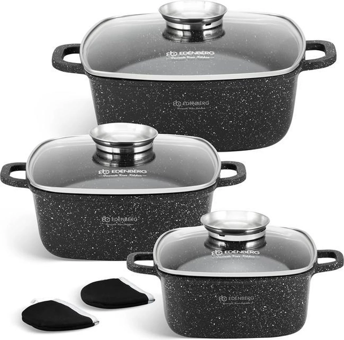 Edรซnbรซrg Stonetec Line – 8-delige Luxe Pannenset van Gesmeed Aluminium – Zwart