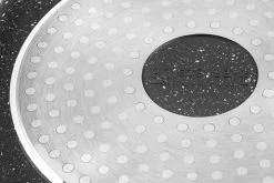 – Gegoten aluminium, met keramische/marmeren coating, ideaal voor aanbraden, en vetarm koken