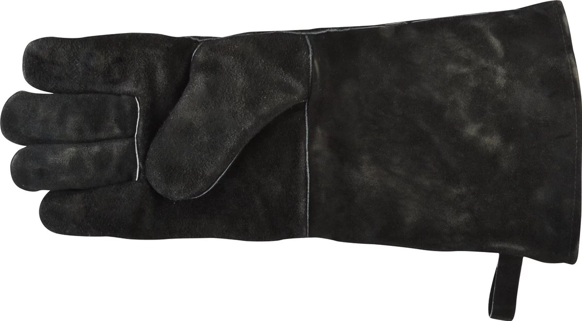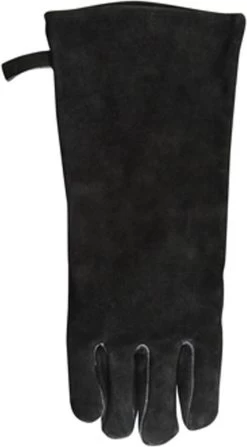 Een leren barbecue handschoen voor je rechterhand. Zorg ervoor dat je nooit meer last hebt van de hitte tijdens het bijvullen van hout of kolen in een vuur. Extra lange mouw beschermt de hand en onderarm tegen hoge temperaturen bij open haard, barbecue, oven en kampvuur. Gemaakt van vlamvertragend materiaal en geeft hitte bescherming tot maximaal 100 °C. Inclusief een ophanglus. Conform EG-richtlijn 89/686 EEG.