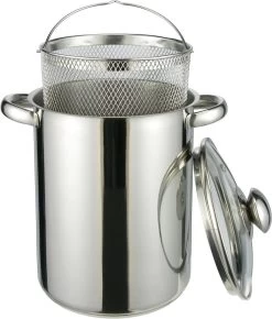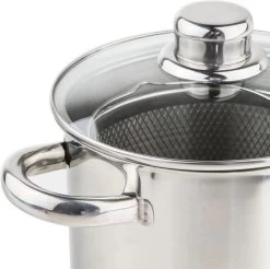Deze roestvrijstalen aspergepan, met handige inzetmand om de asperges te laten uitlekken, heeft een diameter van 16 centimeter en is 23 centimeter hoog. Hierdoor kunnen de asperges rechtopstaand koken. De bodem van de pan heeft een dikte van 4 mm en is hierdoor geschikt voor het koken op gas, elektra, inductie of de keramische plaat. Je kunt de pan buiten het aspergeseizoen, natuurlijk ook gebruiken om groente, pasta of aardappelen in te koken.