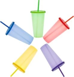 - 5-pack beker met rietje en deksel