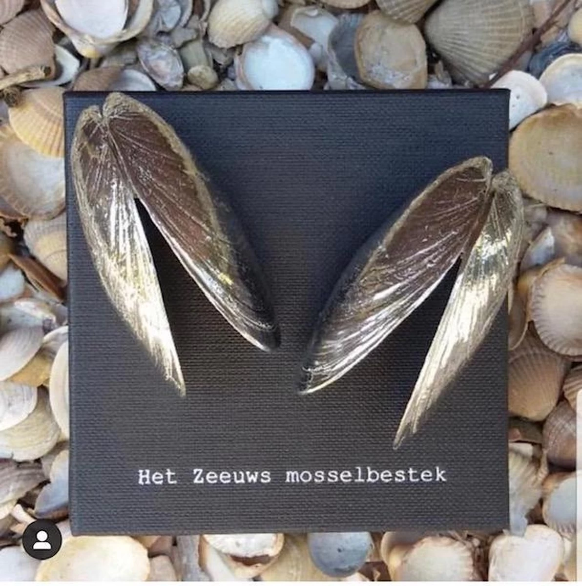 Een mooi cadeau voor de echte mosselliefhebber en een sieraad op tafel, dit prachtige Zeeuwse mosselbestek! Door het speciale veertje werkt het bestek als een echte mosselschelp. Per 2 verpakt in een luxe zwart doosje met certificaat van echtheid.