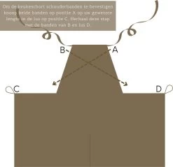 Het ontwerp van de keukenschort heeft een elegante en stijlvolle look. Voorzien van een crossback die ervoor zorgt dat de schort niet langer van de schouder glijdt en je de schort simpelweg kan aantrekken zonder deze keer op keer te knopen. De schort is voorzien van 2 voorzekken voor extra functionaliteit.