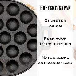 Doordat de pan gemaakt is van gietijzer en beschikt over een anti-aanbaklaag, is de poffertjespan gemakkelijk schoon te maken na gebruik. Ook zorgt het ervoor dat de poffertjes niet blijven plakken aan de pan.