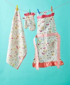 Jill komt met een eigen collectie: De baklijn van Jill! In navolging van haar leukste DIY’s op Youtube en bakinspiratie uit het televisieprogramma van Jill, is er nu een écht Jill servies met leuke accessoires voor in de keuken en op tafel. Met onder andere dit vrolijke keukenschort. Naast dit schort voor kinderen is er ook een groter schort voor volwassenen, zodat je gezellig samen kunt bakken. Op het schort zijn de herkenbare illustraties van Jill terug te vinden. Het schort is afgewerkt met roze roesjes en heeft een zakje. Bescherm je kleding in de keuken in de stijl van Jill!