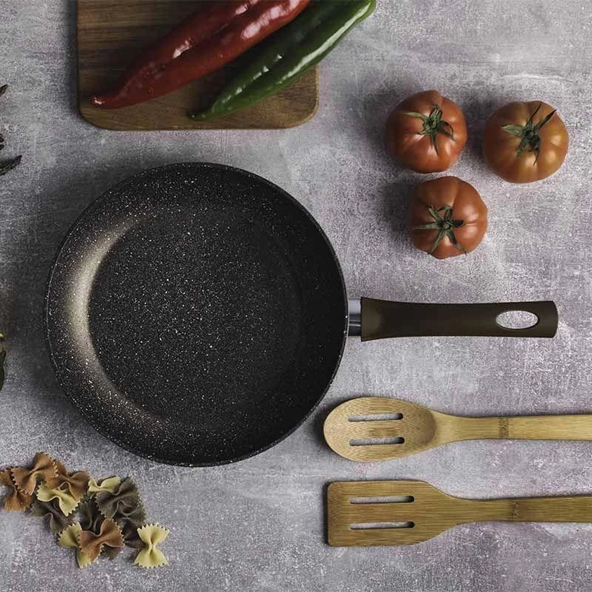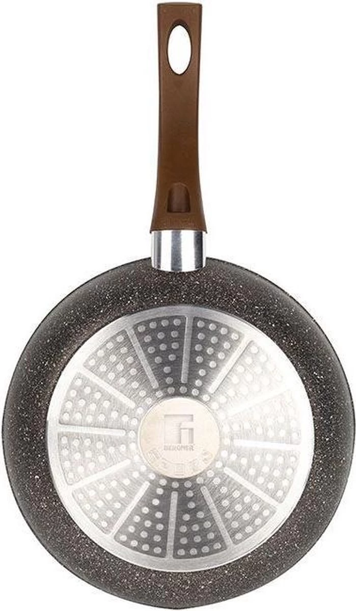 De koekenpan bestaat uit 6 lagen. Een RVS bodem, een basis van 100% gerecycled aluminium en een duurzame water-based coating van 4 lagen. De coating op waterbasis, gecombineerd met nieuwe technieken verminderd productverspilling en afval. Dit verminderd de uitstoot van schadelijke gassen en stoffen en zorgt voor een vermindering vna de milieu-impact. De tussencoating is daarnaast versterkt met minerale deeltjes. Dit garandeert de langst mogelijke duurzaamheid, biedt de beste anti-aanbakeigenschappen en een hoge weerstand.