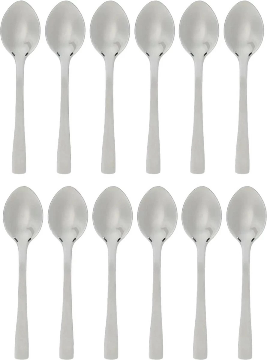 12x Koffielepels/theelepels. Materiaal: RVS. Afmeting: 9,5 x 2 cm. Vaatwasserbestendig.