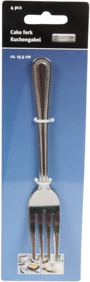 Een setje met 16 gebaksvorkjes/taartvorkjes. Lengte: ca. 15,5 cm. Materiaal: metaal. Deze vorkjes zijn geschikt voor in de vaatwasser.