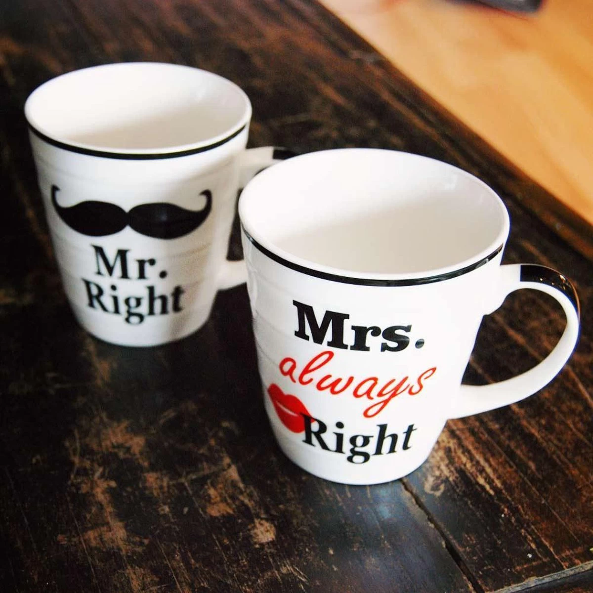 Deze te gekke set met 2 mokken zegt genoeg, Mr Right and Mrs always right. Daar zal je vriendin wel blij van worden. Zo heb je nooit meer de discussie over wie er gelijk heeft.