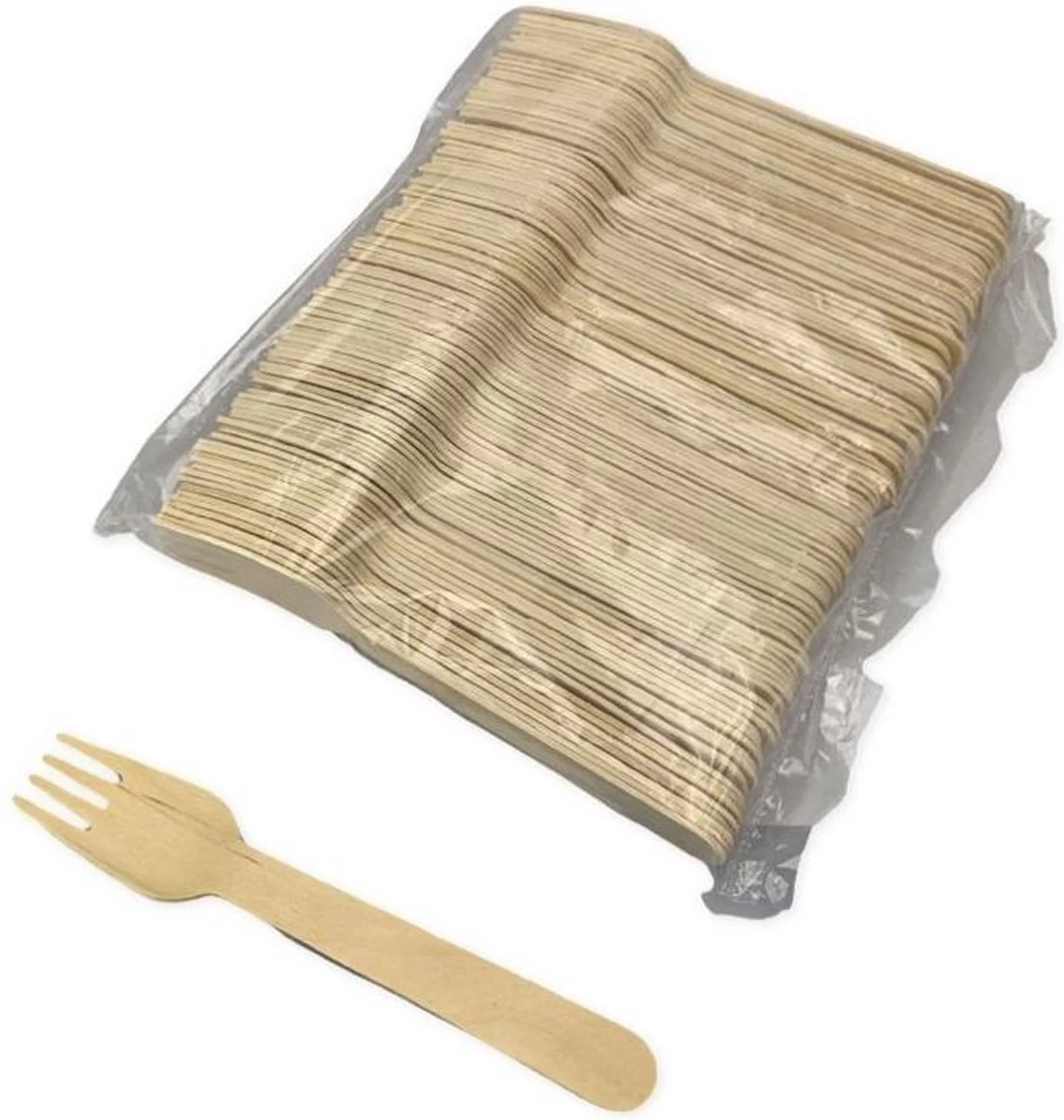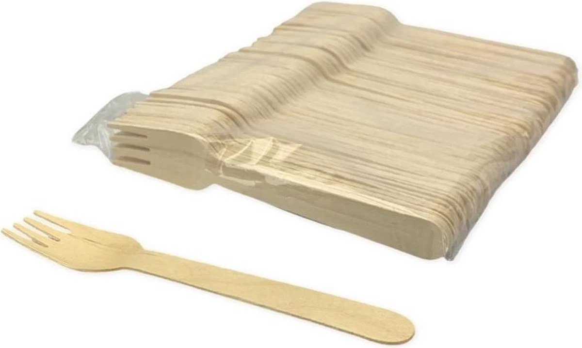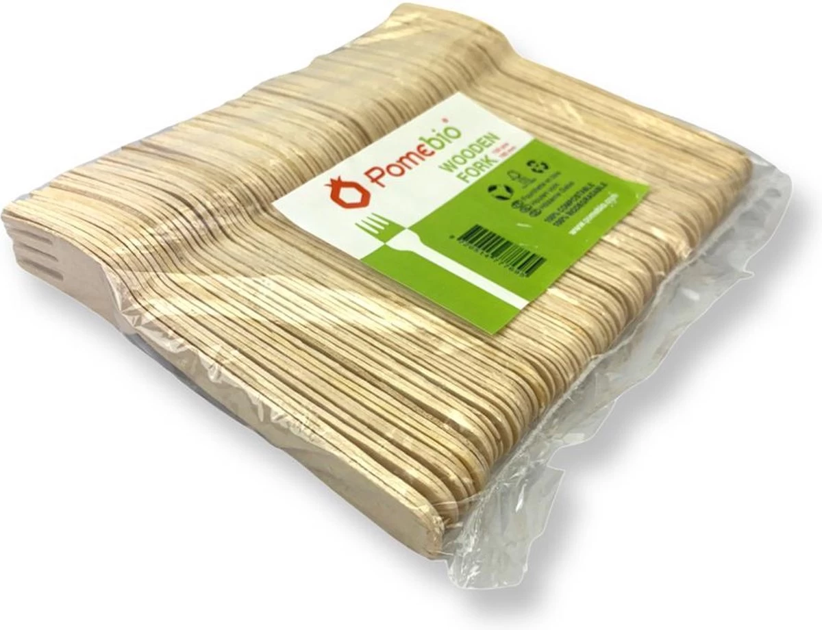 Houten Pomebio wegwerp vorken gemaakt van licht berkenhout.