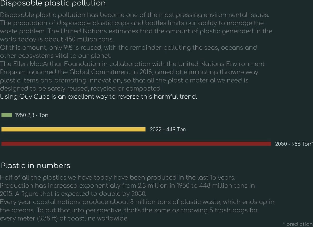 Quy Cup Espresso cups are environmentally friendly because they can be recycled indefinitely: this means fighting together against the waste of disposable products.