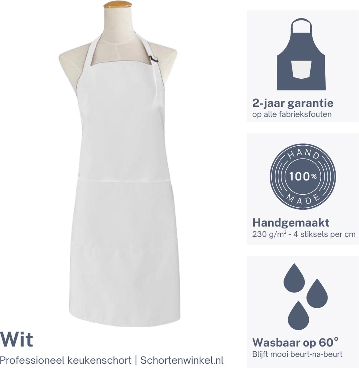 Keukenschort wit met een professionele uitstraling