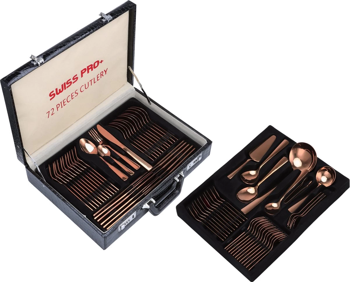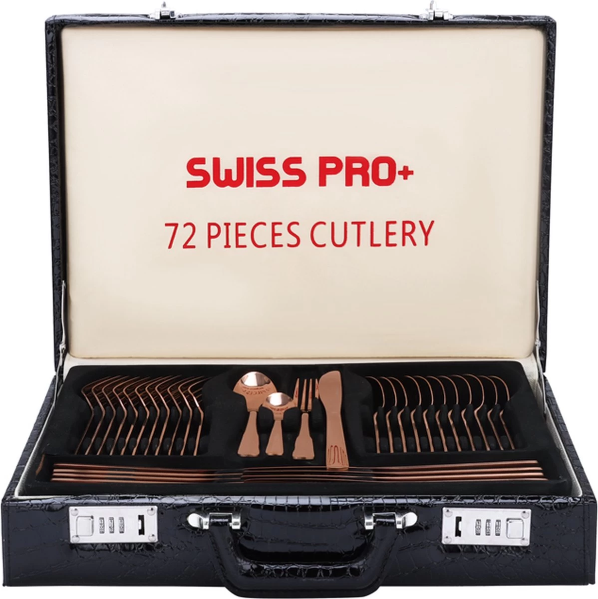 Swiss Pro+ Bestekset in Koffer-72 delig-12 persoons-Zwitsers Kwaliteit-Complete Set-100% roestvrijstaal- Rose Gold 24k – Rose Goud 24K