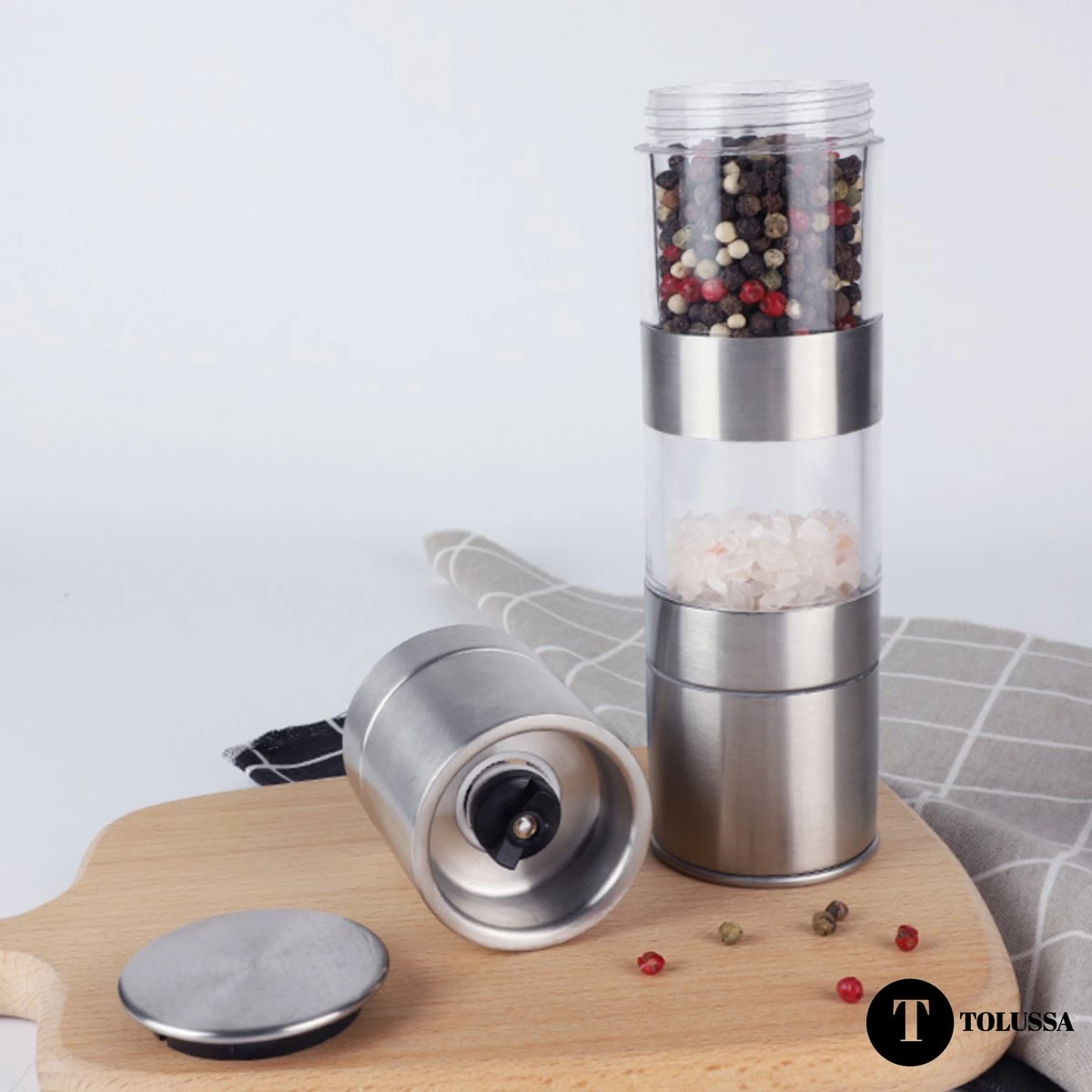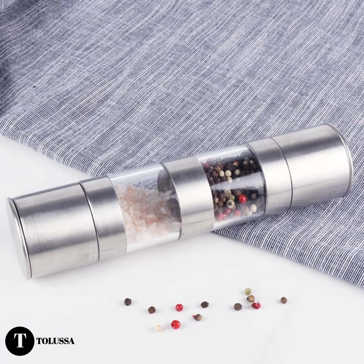 - Multifunctioneel: onze Tolussa 2 in 1 peper- en zoutmolen heeft een instelbare maalgraad. Hiermee kun je de korrels naar wens malen, van fijn tot grof. Ideaal voor al jouw gerechten die een personal touch nodig hebben met peper en zout!
