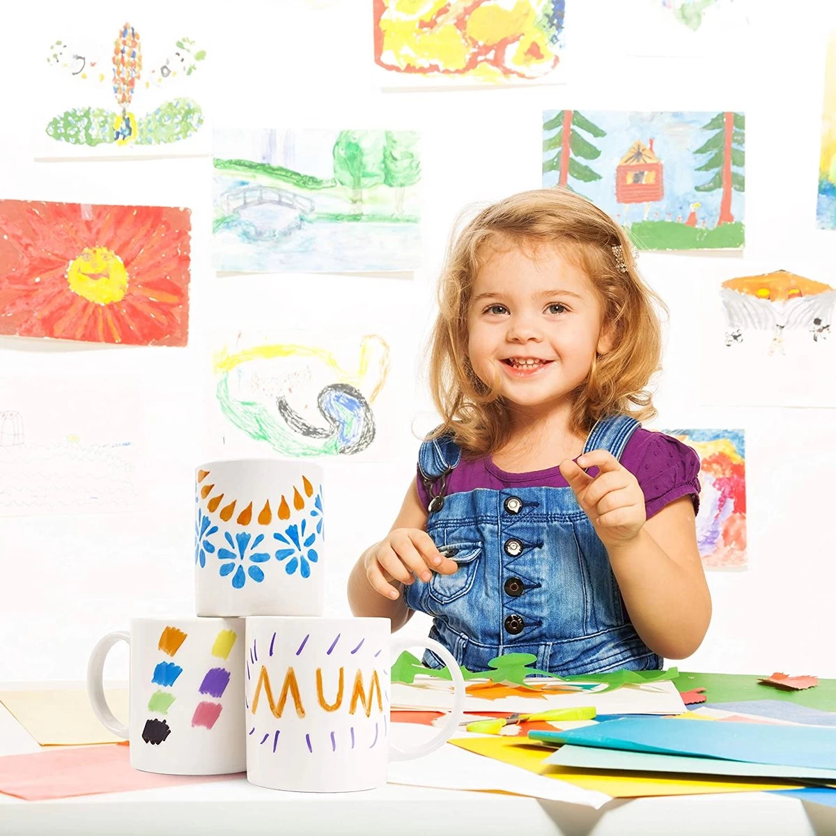 Onze set van 4 witte mokken van hoogwardig porselein is ideaal om te decoreren en te versieren met de bijgeleverde keramiekstiften. Ze zijn geweldig als knutselproject, voor regenachtige dagen enz, of als een gepersonaliseerd cadeau. Ook ideaal voor verjaardagen, Moederdag of Vaderdag.