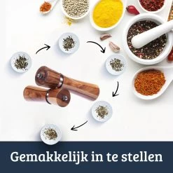 Deze luxe peper- en zoutmolen set gemaakt van Acaciahout zal elk gerecht beter doen smaken. Vers gemalen kruiden zullen het gerecht hoe dan ook naar een hoger niveau tillen. Deze sfeervolle smaakbeleving wil jij niet missen!