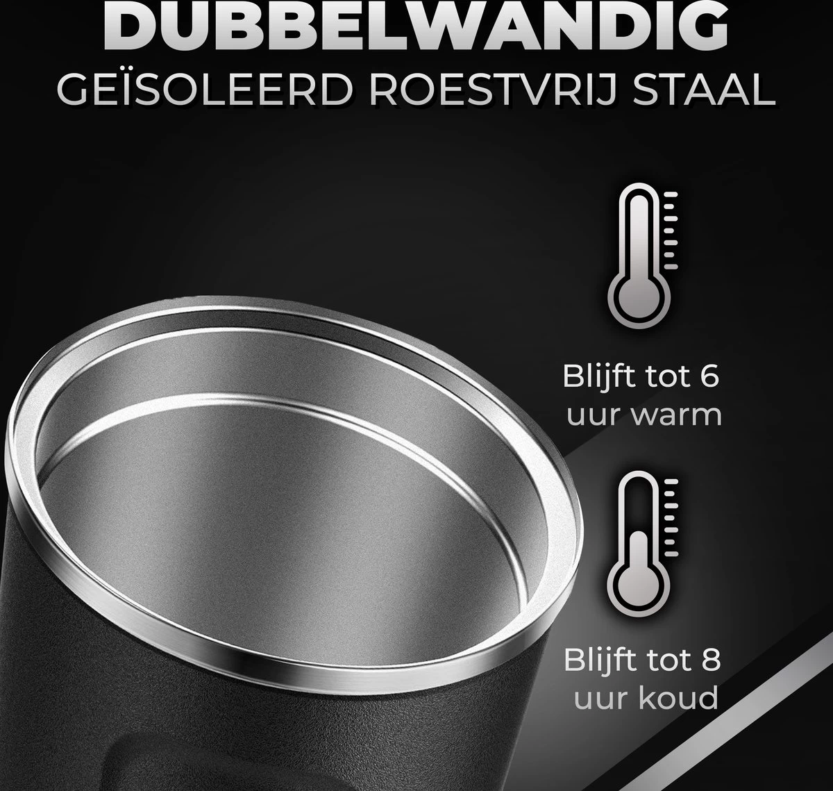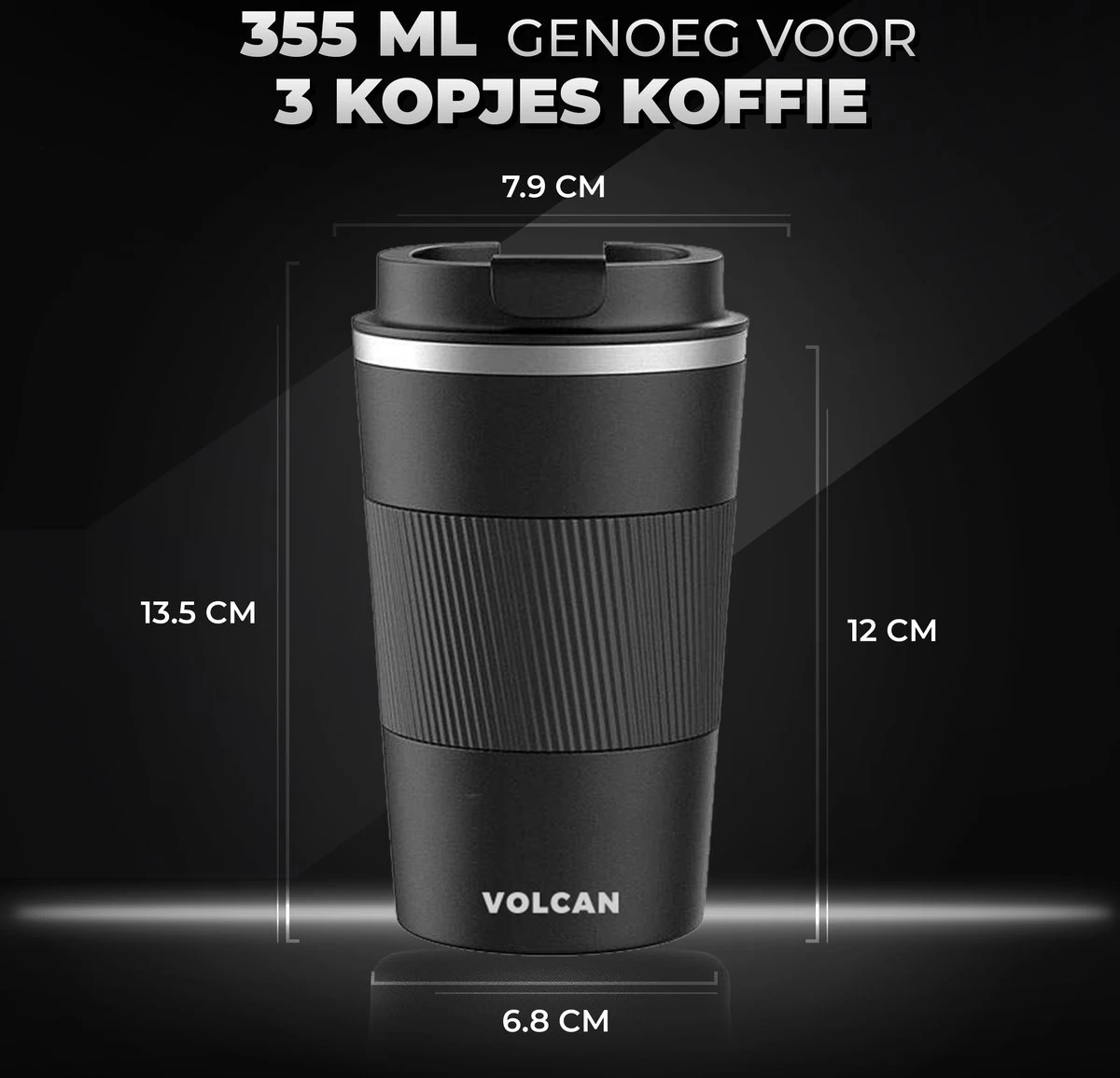 Let op: door de grote inhoud van 355 ml past deze thermosbeker mogelijk niet in alle bekerhouders in auto’s.