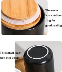 Voorraadpotten Keramiek – Suikerpot 3 stuks – Deksel Bamboe – Luchtdict Voorraadbussen Potten – Wit