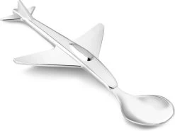 Elke ouder zal dit wel herkennen om het eten voor de peuters nog leuker te maken: doen alsof de lepel een vliegtuig is die zó het hapje in de mond laat vliegen. Dat heeft de ontwerpers van Zilverstad geïnspireerd om deze kinderlepel te maken.