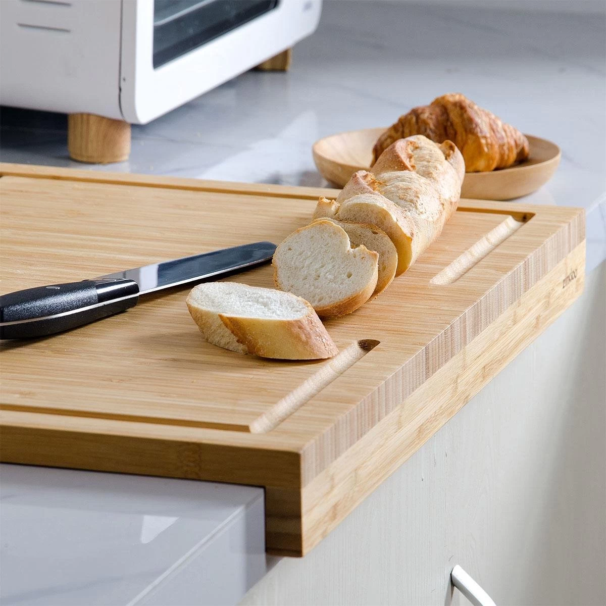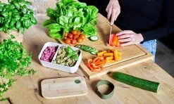 Ultieme grip en stabiliteit tijdens het snijden van groentes, vlees en andere etenswaren. Deze snijplank is uitgevoerd in FSC bamboe, het ideale materiaal voor in de keuken! Bamboe heeft een hardere en dichtere structuur dan de meeste tropische houtsoorten. Hierdoor is de plank beter bestand tegen scherpe messen en vocht. Door deze eigenschap is de afbraak van bacteriรซn hoger dan bij andere houtsoorten. De aanrecht rand zorgt ervoor dat de snijplank niet verschuift.