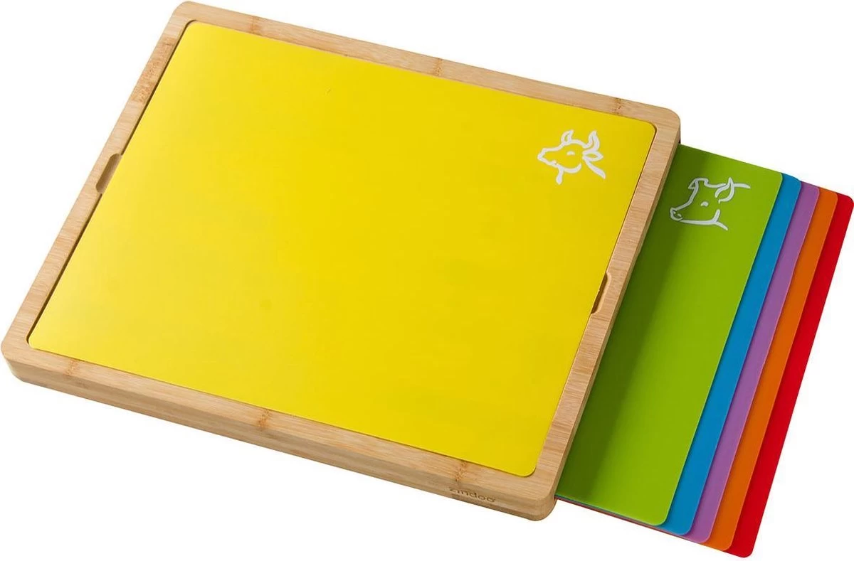 - HYGIรNISCH: Door de 6 verschillende snijplanken heb je er รฉรฉn voor elk voedseltype. Zo houd je de etenswaren van elkaar gescheiden voor optimale hygiรซne. Bamboe is daarnaast waterbestendig en gemakkelijk schoon te krijgen. Ideaal voor in de keuken!